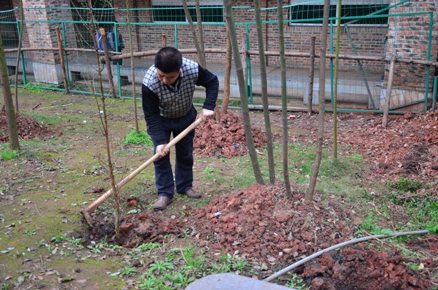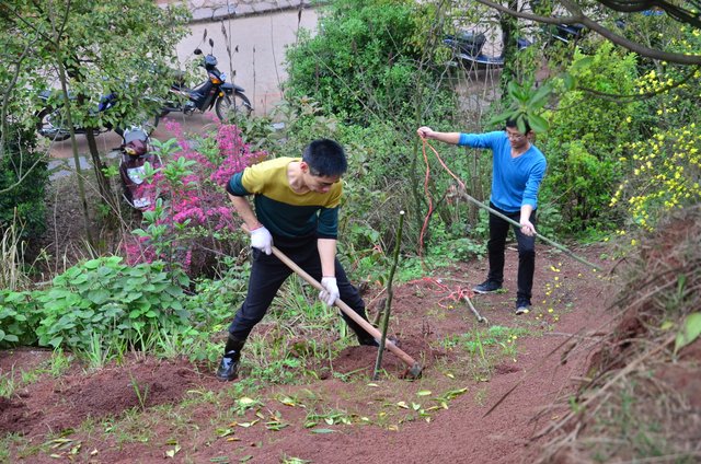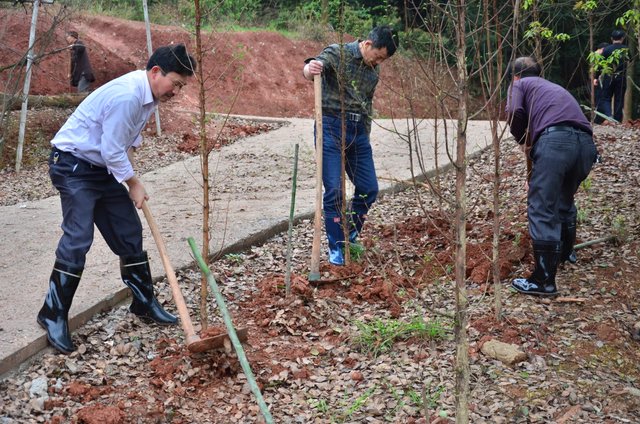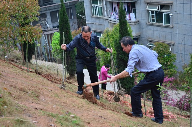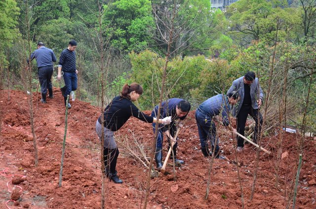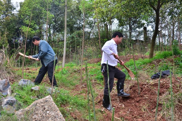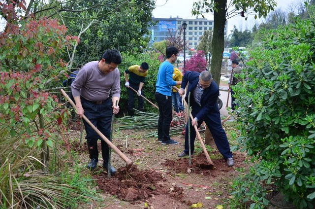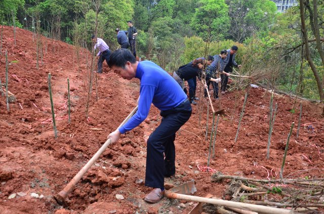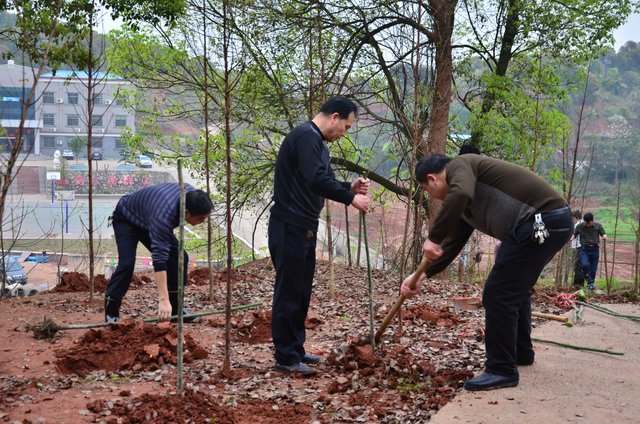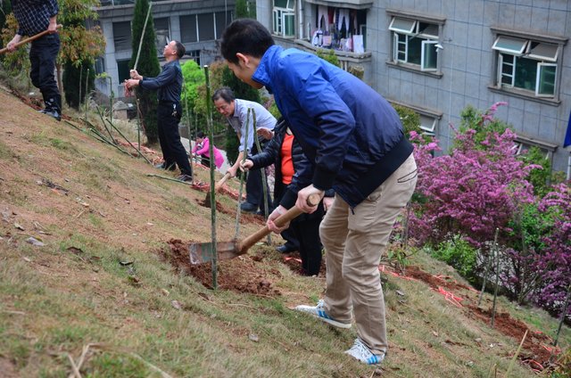 在月初的前两轮植树活动中,同学们已经在校园种下了几千棵大大小小的樟树、桂花树、水杉树。现在校园里基本只剩下东山和西山的陡坡及一些零星的紫页岩地没有种上树,此次植树主要就是针对那里。
