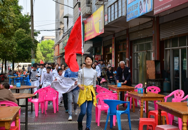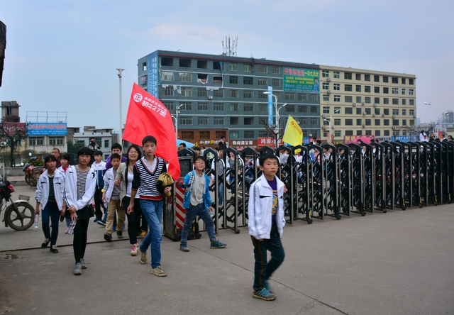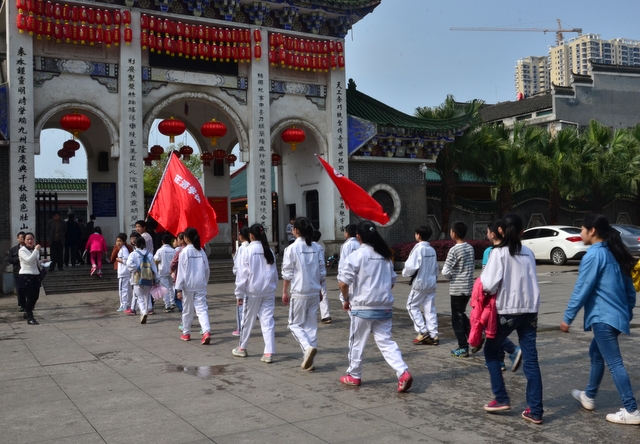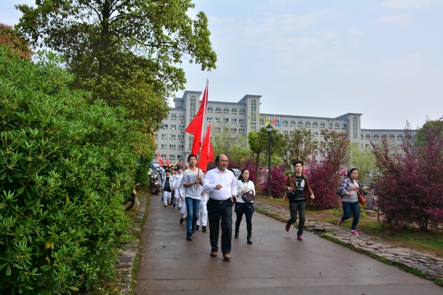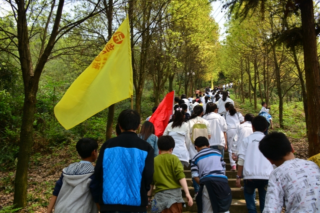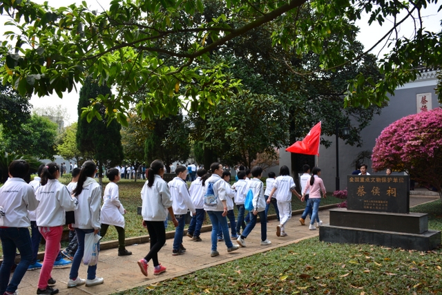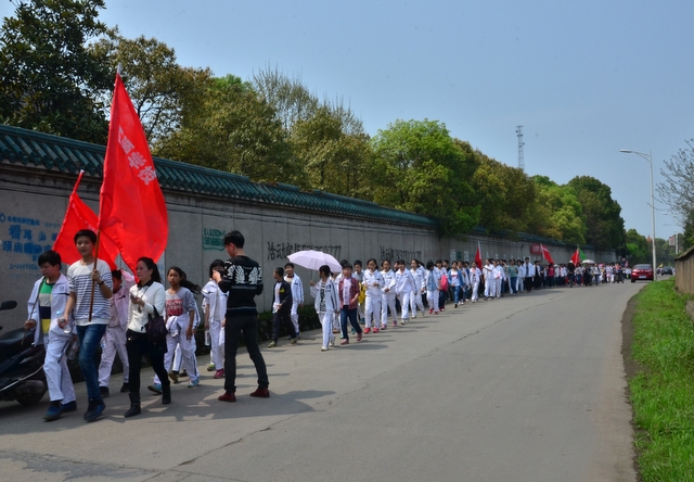 上午九时许,队伍从学校出发,按计划路线经迎宾大道——德泰隆路——群英路——金南路——火电厂——鹿歧峰。队伍在位于群英路边的蔡伦公园稍作停留,参观国家级的爱国主义教育基地蔡侯祠。部分班级在公园里拍了集体照,留下人生美好的回忆。
