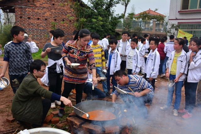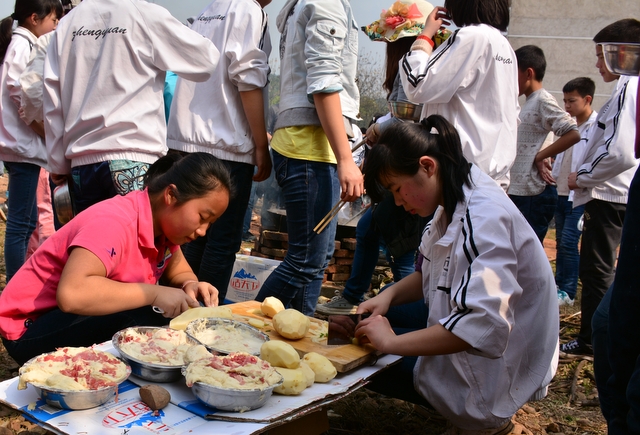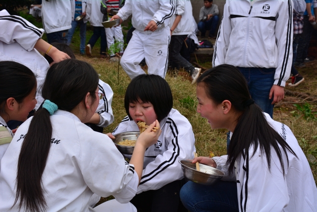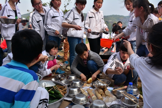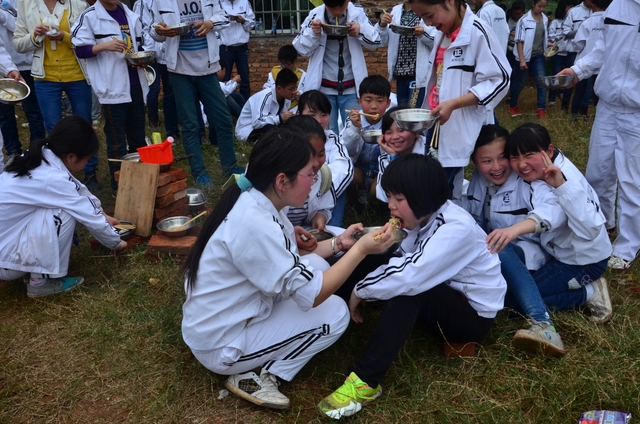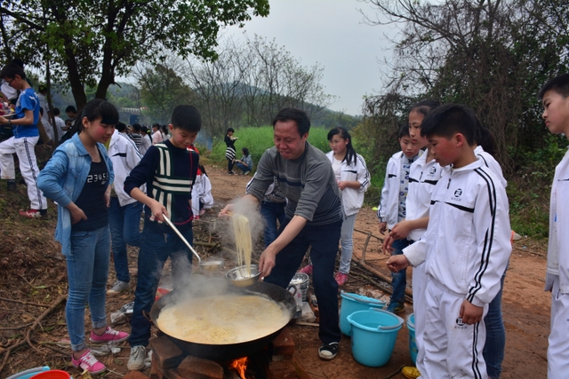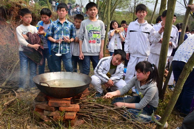这些学生多是十二三岁的娃娃,很多带队的班主任也刚出大学校门不久,做饭,尤其在野外做饭,对他们并不是一件容易的事。找石头、砖头垒灶,找水,找柴,生火,煮食……每一个步骤对他们都是一个挑战,但我们看不到犹豫,看不到悲观,洋溢在师生脸上的是汗水是欢乐是满满的自信。这野炊的一幕正是“敢打敢拼,敢为人先”的正源精神的写照!吃过饭,大家小心翼翼用水浇熄柴火,冷却灶台,把石块砖头码归原处,把垃圾清理干净,尽量让刚刚搞生活的地方恢复原貌,然后列队返回。6时30分许,所有春游学生全部安然抵校。