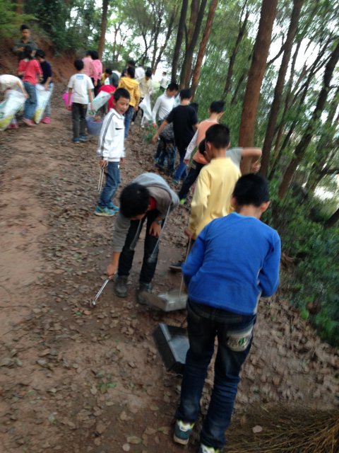 3月31日下午6点,正源学校五、六年级的小义工们集合于小学部运动场,自带垃圾袋,清扫工具等,由谢红云老师、周彦儒老师等,带领大家前往东山和西山清理垃圾。小义工们发扬“从小事做起”的精神,有的钻到草丛中用手将绿地中的琐碎纸屑、废弃塑料袋、烟头等丢弃物收集到自带的垃圾袋中,有的则运用扫把等工具清扫道路垃圾等。他们通过自己的点点爱心和微薄之力,给正源学校带去了更多的绿色。