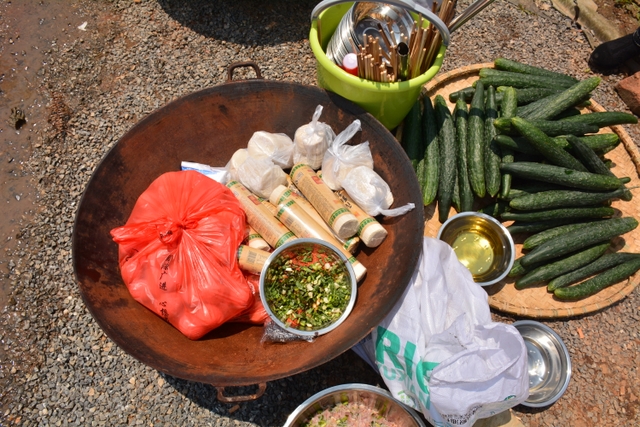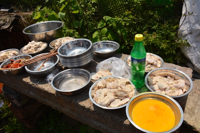 学校后勤服务人员为每个班级准备了丰富的野炊食物和用具