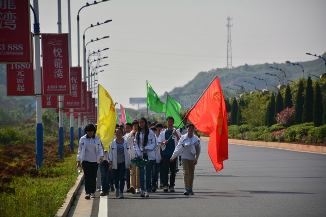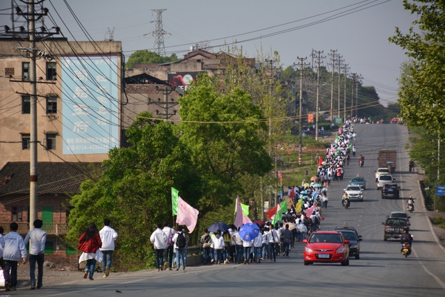 为了宣传和开展全校健身活动,展示正源学校准高一年级师生的良好风貌,积极推行素质教育理念,塑造学校美好形象,锻炼学生的顽强意志,增强学生体质,培养学生吃苦耐劳的精神,强化集体意识、纪律观念和环保意识,准高一年级于四月十二日举行了远足活动。此次远足从学校出发,经工业大道横穿107国道,经过三桥村上107国道,沿国道、耒阳大道到达南岭仙,回校沿107国道返回,全程三十公里左右。