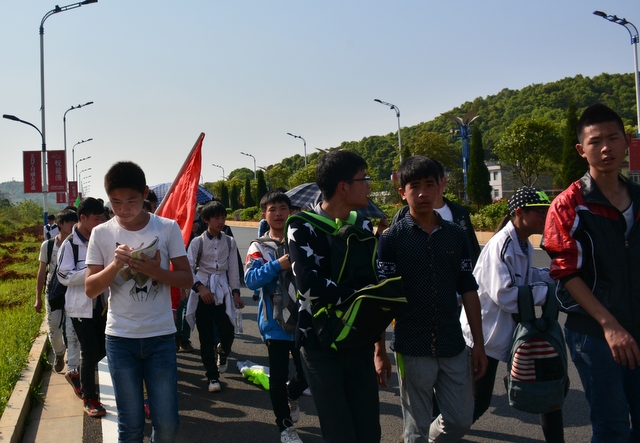 下午三点,全体学生集合完毕,由于时间关系,原本参观顺湖的计划临时取消,队伍沿耒阳大道、国道返回。虽然烈日当头,明知路途很远,可全体同学还是坚持步行返校。没有到耒阳最大最美的人工湖看看,很多同学都感到是一个遗憾,但正是这一个个遗憾给了我们下一次追求的目标。一路上,那些坐着小车、摩托车返校的孩子,从他们的眼光中,我读出了一种羡慕,更有一种赞许。“人生就是一场旅行,不必在乎目的地,在乎的是沿途的风景和看风景的心情。”“千里之行,始于足下。”同学们用自己的双脚,走完了自己高中阶段一段重要的路程,这次远足的经历,一定会鼓舞他们去战胜今后学习中遇到的一个又一个困难。