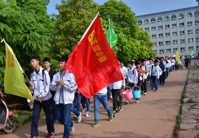 队伍出发前的集会中,校长作了激情四溢的动员讲话,重申了“进校即思进取,怕苦莫来正源”的作风,大大鼓舞了大家的斗志。
