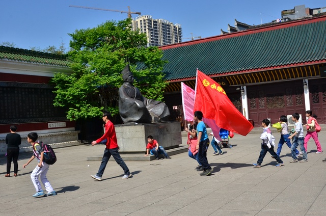队伍到达蔡伦纪念园时,学校组织学生一一进去参观,让学生了解了中国的造纸术。学生一边参观,一边赞叹蔡伦的伟大智慧,同时也为自己是一个耒阳人感到骄傲。学生们在纪念园里合影留念后,队伍继续往前走。