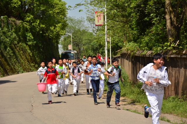 下午3点半学生吃饱稍做休息,我们就走在了返程的路上,虽然大家体力不支,有的同学双脚磨起了血泡,但仍然坚持前进,有的同学拄着木棍,一瘸一拐艰难前行,也不愿意接受老师的帮助;有的同学让学生搀着,咬紧牙关坚持不坐校车。