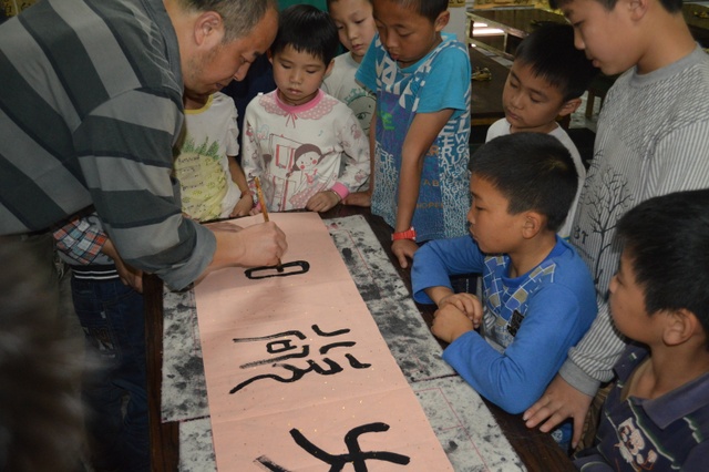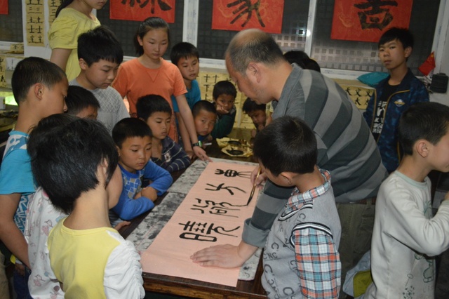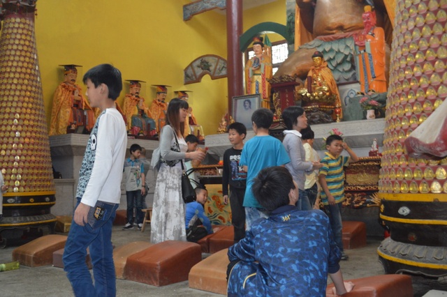 这次的假期,我们另开设了书法课,初中部的黄文海老师和留校生在书法室度过了一个愉快的下午,一幅幅稚嫩的书法作品诞生了。星期天的上午,我们带领学生来到了耒阳盘古庙,此天正值农历初一,学生在庙里见识了中国的佛法精深,也见识了中国香客的络绎不绝,好多学生都跟着香客一起跪拜佛祖,嘴里念念有词,我好奇去询问,学生咧嘴一笑,齐声说道:“不告诉你。”随后我们还去草莓基地参观了一番,初步了解了草莓的种植知识。