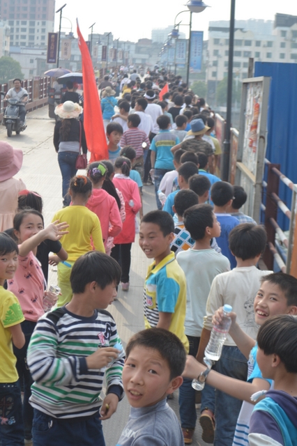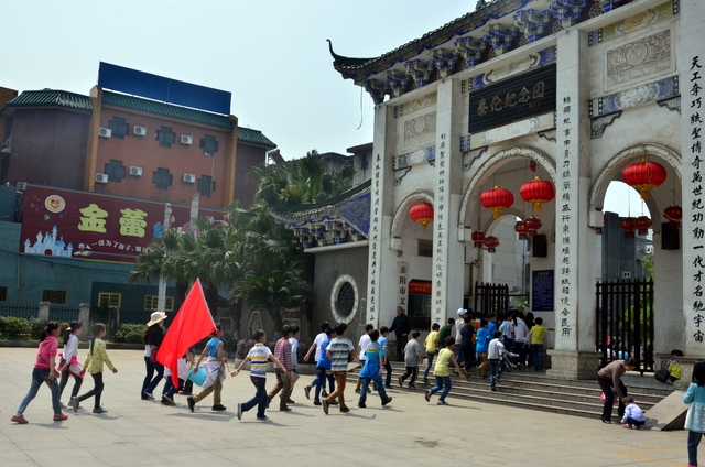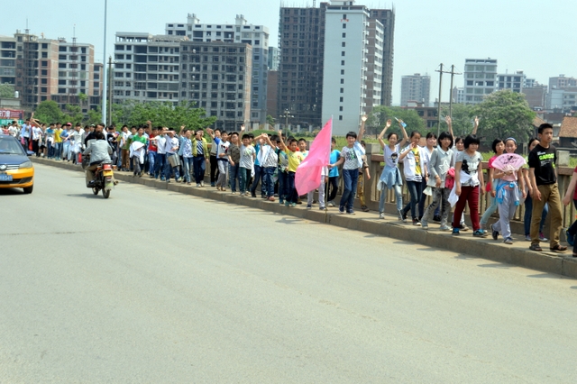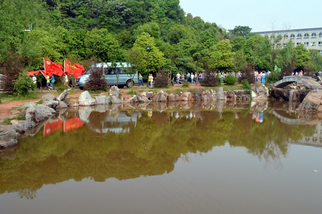 4月26日,小学部在继五、四、三年级远足活动之后,又组织六年级1000多学生去鹿岐峰远足。这次的远足路线与前面几次一样,都是从鹿峰南门上,从鹿峰西面下山到水东江经过钢便桥返校。与前几次不同,这次活动的集体照地点没有选择鹿峰寺的大雄宝殿,而是改在上山的牌坊处。