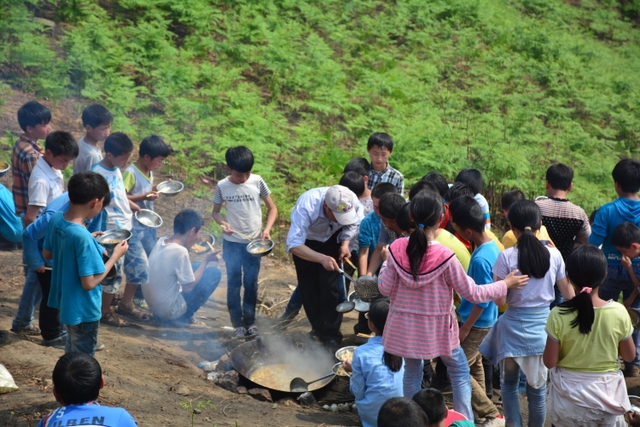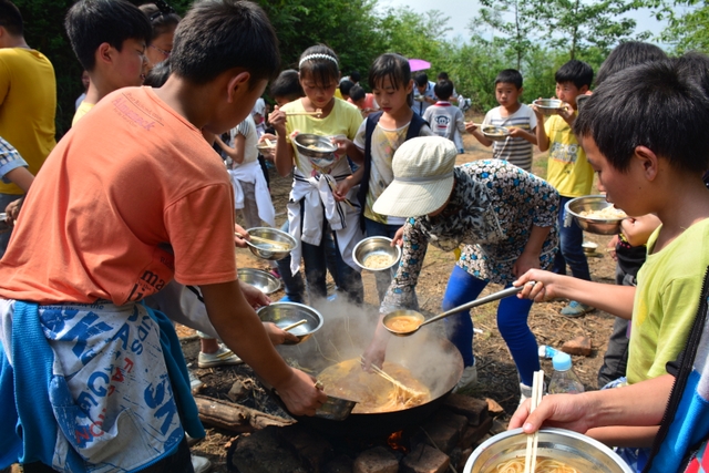 在这次远足中,学生在体力方面表现比小学部其他年级要强许多,基本上走完全程不打紧。他们对野炊中一系列程序(从垒灶到煮熟食物)的操作比学弟学妹要娴熟得多。学生们不等不靠,对自己动手搞生活轻车驾熟。123班一个男生自豪地说:我们班的饺子全是我们包的!130班齐心协力,动作很快,第一个结束野炊,清理人数,整整齐齐排队下山。这次野炊用时短,各班进度相对整齐,使得归途的整个队伍没有拉开太大距离,进校时间相当集中,为后勤保障、安全保卫减轻了部分压力。