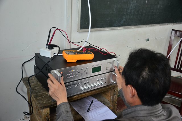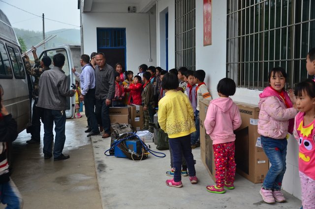 首先到达山碧小学,该学校打铃还是采用敲钟的老方法,做课间操和眼保健操没有广播,课余时间也没有音乐。因此除了捐赠三台电视、电脑之外,还会给他们装上广播设备。我校工作人员以极快的速度完成了卸载、电焊、组装、调试,精准而纯熟的技能保证了设备的正常运行。校长阳小红拿着麦克风在广播中感谢罗校长的慷概捐助。试播出来的欢快音乐让孩子们脸上满是幸福的笑容,教室里的多媒体更是吸引了他们的眼球。