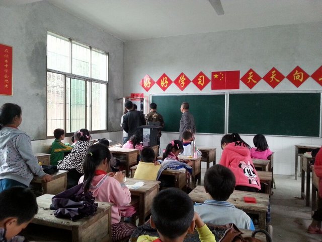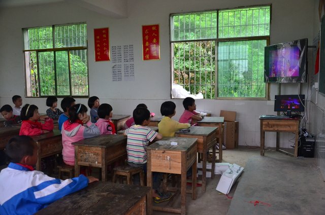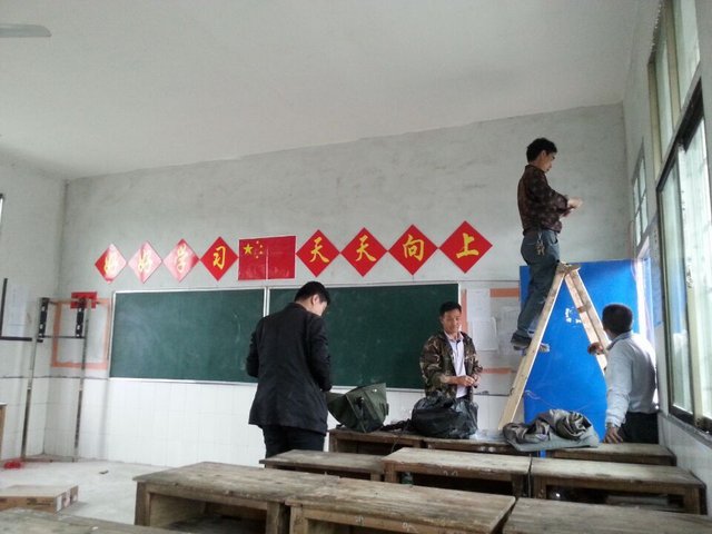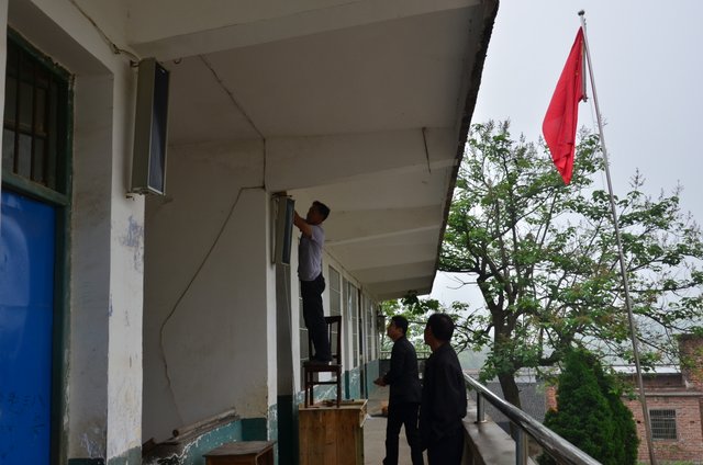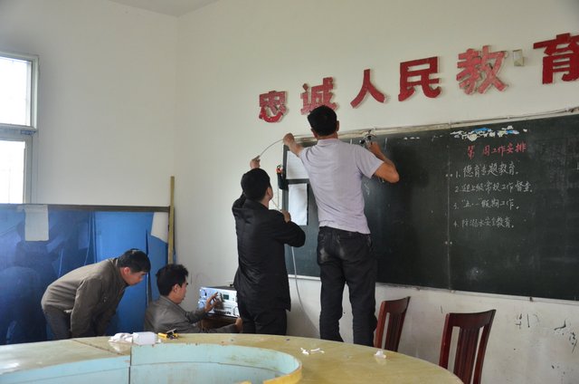 在告别山碧小学师生之后,工作人员经过约半个小时的车程顺利抵达寿州希望小学。没有一丝停歇,按部就班的完成每一个步骤,不多久并将两台彩电和电脑安装成功。有个班在安装前已经放学回家,次日这些崭新的彩电、电脑定会带给他们来很大的惊喜。