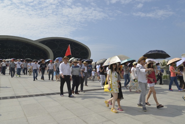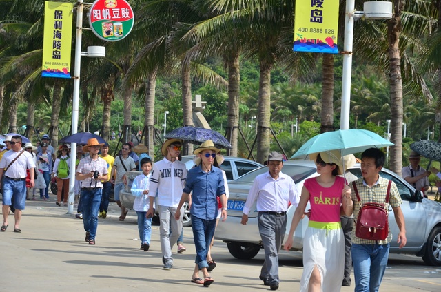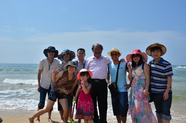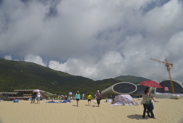 昨夜全体教师皆宿海陵岛之海聆星汇大酒店,今晨早餐相当齐整准时,餐毕,8时左右全部上车。车队浩浩荡荡沿环岛路逶迤而行,9时许到达十里银滩。这是海陵岛上最著名的也是标志性的风景。不知是谁取了这么一个“十里银滩”的名字,其实应该没有十里长,能打个五折就不错了,细细的沙子也不是银色,反是黄灿灿的,该叫金滩才是。