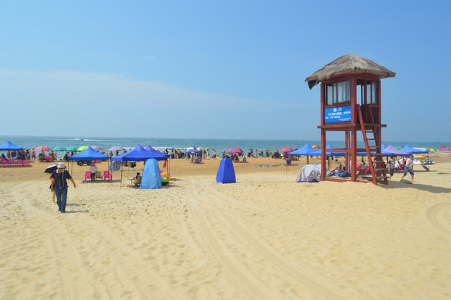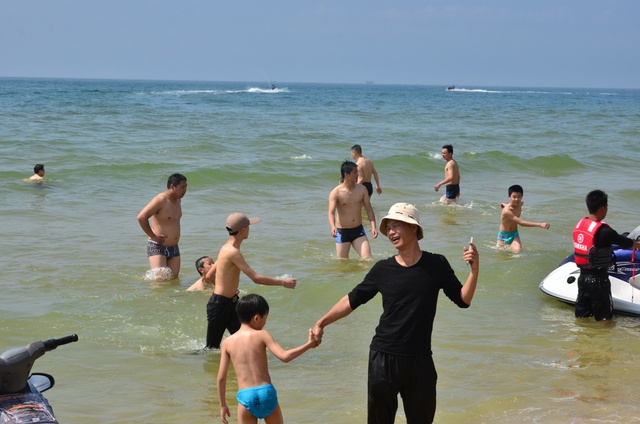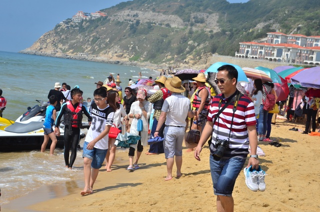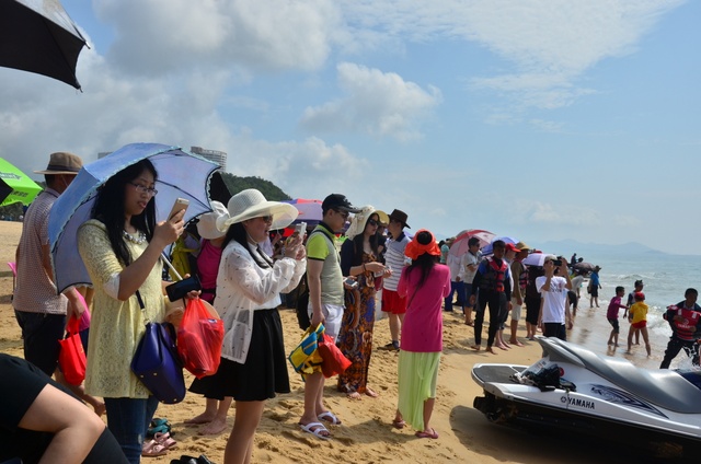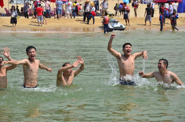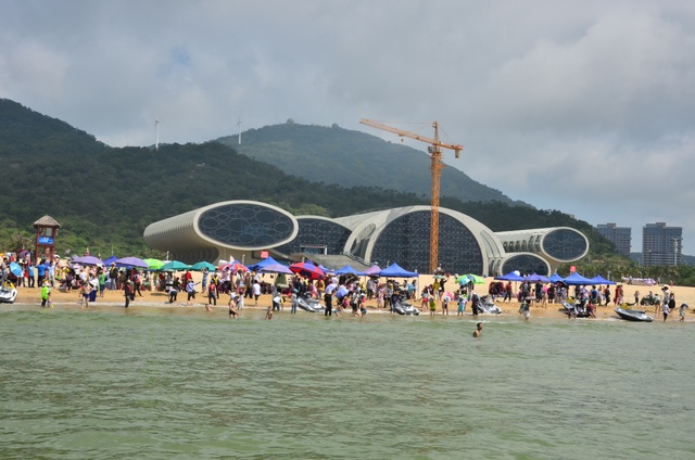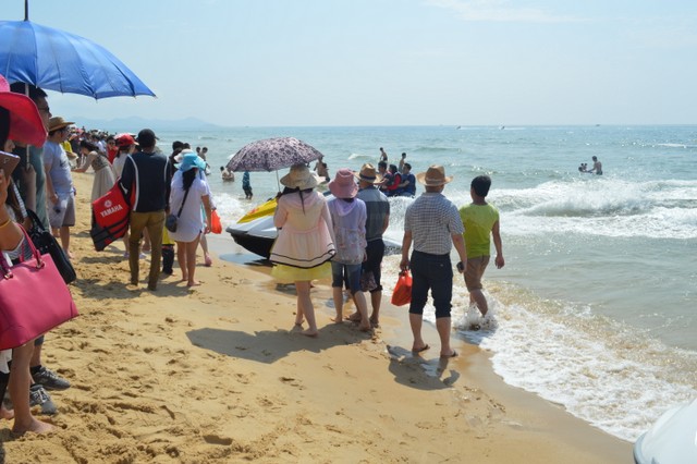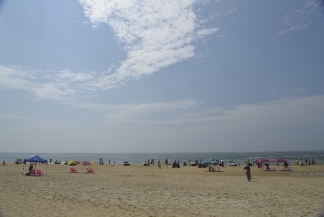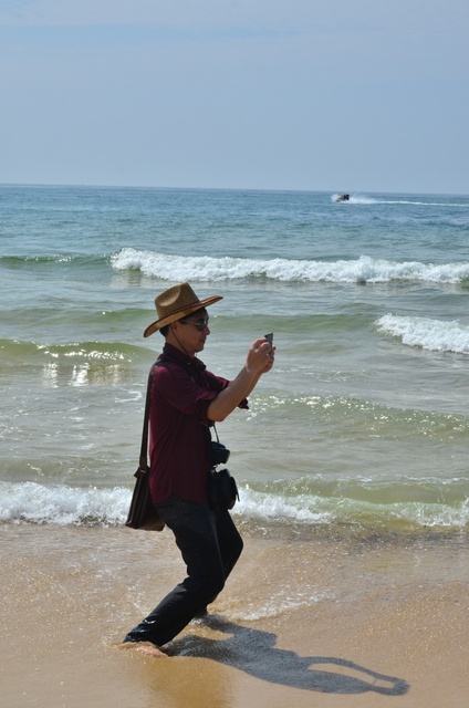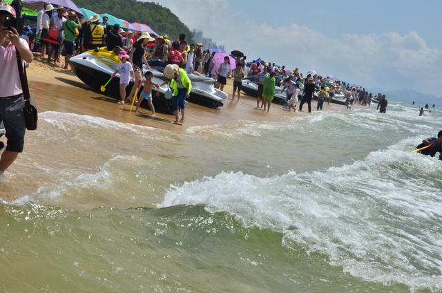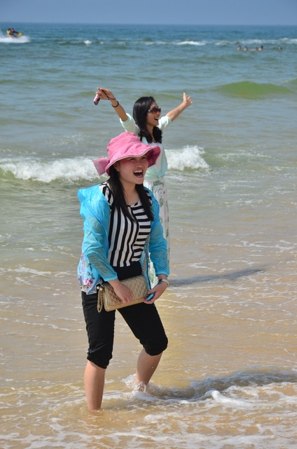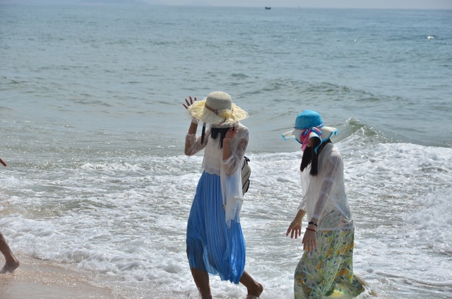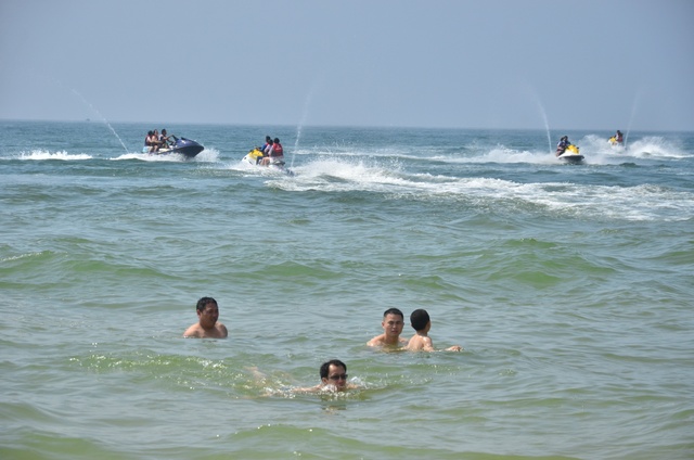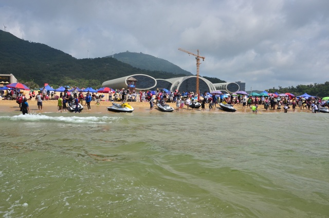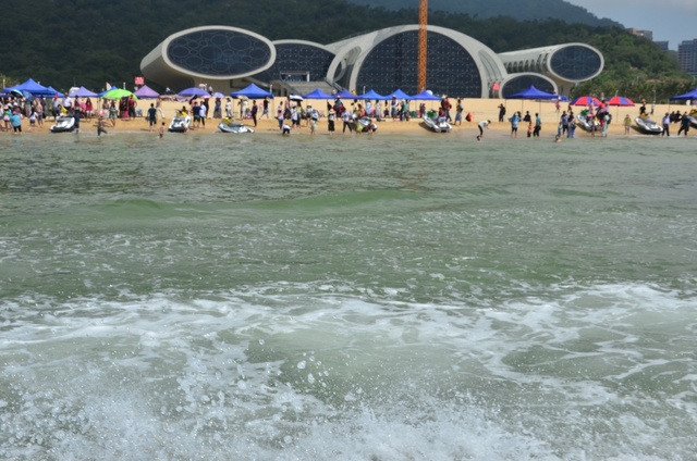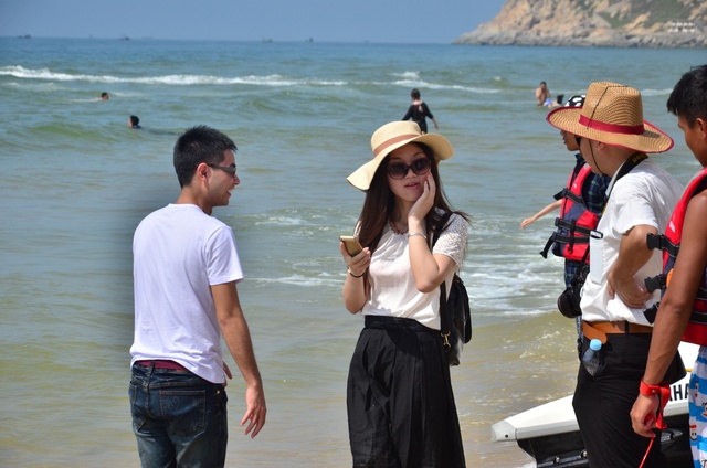 我们到达时没有多少游人,或许那儿本来就没有多少游人。我们这近400号人一下子涌上那一片沙滩,乐坏了那些沙滩经营者。他们是靠摩托艇载人去海里冲浪赚钱,为了鼓动我们去冲浪,他们一个个露着谄媚的笑容,解说着摩托艇的的安全、刺激、好玩。
