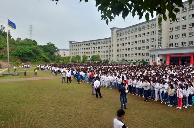 升旗仪式由校团支部书记周文根主持,初中学部主任曾良古在国旗下作了重要讲话,初中学部主管教育教学副主任李佐新作2015年上学期期中考试动员,初中学部主管德育副主任肖常科作题为《加强溺水安全预防教育》的讲话。