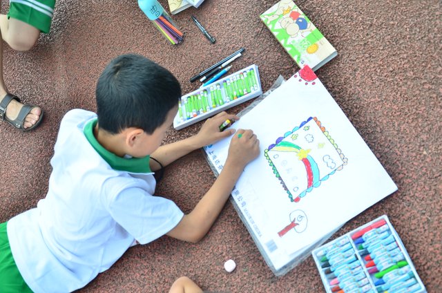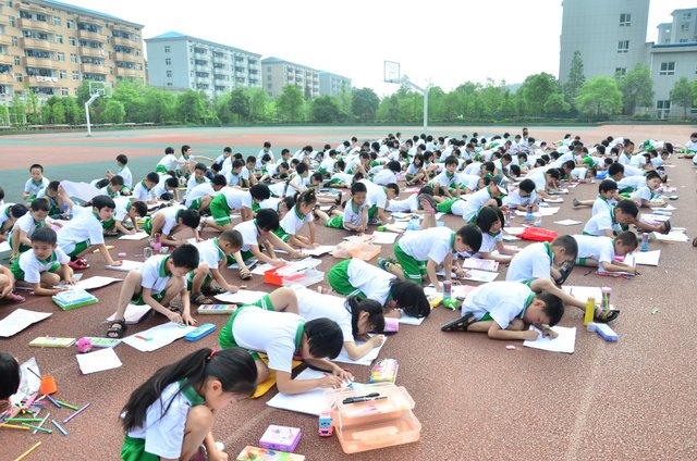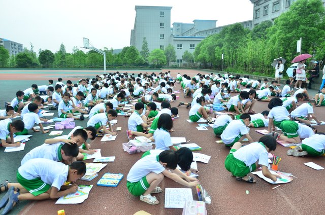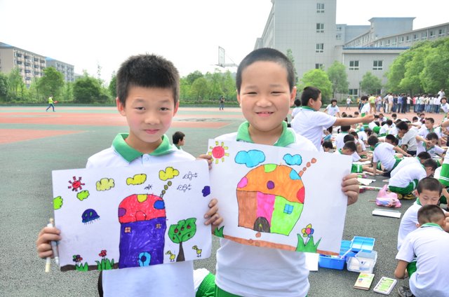 上午8时,比赛正式开始,每个班的学生都带上了作画工具来到学校操场开始创作。小画家们充分发挥了自己的想像力,大胆构思,把自己心目中最美丽的图画在画纸上展现出来。