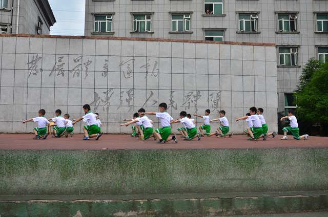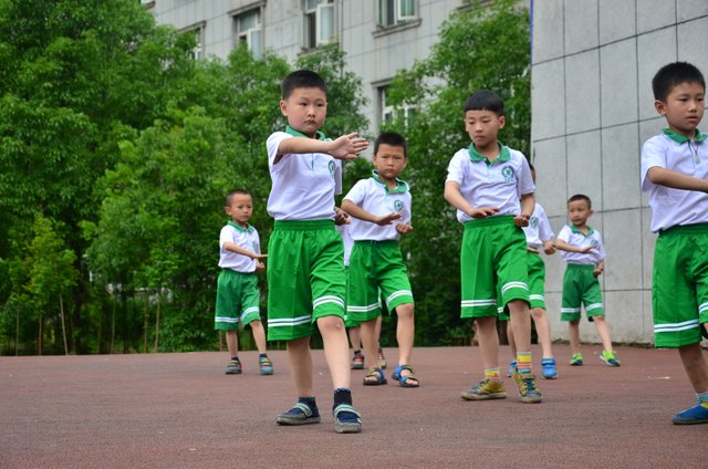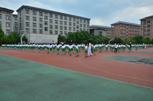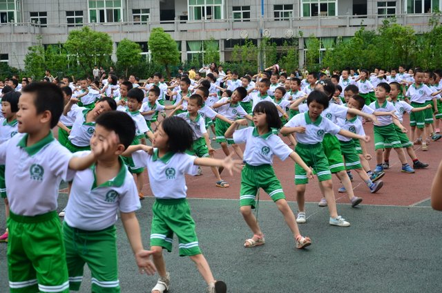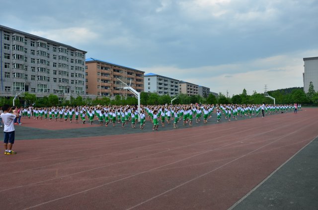 下午两点半,学生们统一着身着校服,在班主任的带领下步入了校运动场,每个班都整齐有序的站在划分的范围内。三点活动正式开始,随着音乐的响起,音乐老师伍鑫站在小广场上示范,同学们跳的有模有样,每个人脸上洋溢着幸福与欣喜,表演的神采飞扬。一曲完毕又接一曲,老师们也站在学生队伍后面跟着一起舞起来。整个场面陷入了音乐舞蹈的海洋。