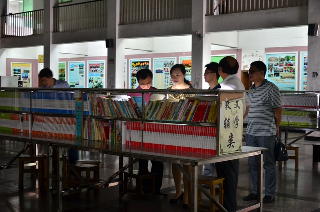 听课前,廖部长一行察看学校全天侯开放的阅览大厅
