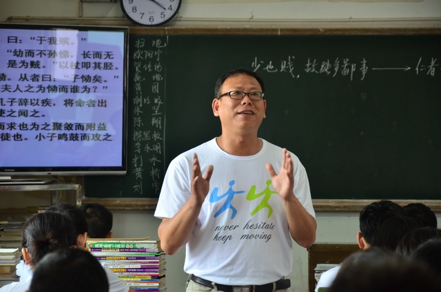 一本看似枯燥乏味的《论语》,为什么江老师在课堂上却讲得如此生动呢?这一切源于我校“文科抓阅读”的教学理念。本届高三的同学们,在准高一时就用了一个学期的时间,专门学习研读《论语》。主讲老师江宗斌克服了无教案、无课件等诸多困难,自己编写教案、制作课件,让同学们在快乐中学习《论语》。如今,看到同学们能熟练地运用《论语》到写作中、到生活中,江老师感到非常欣慰。