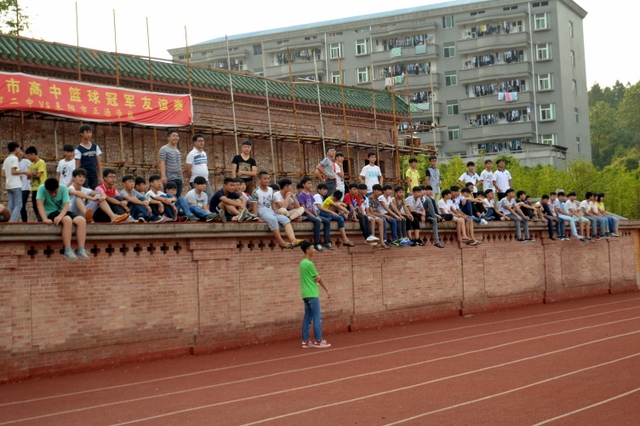 在炎炎烈日下,比赛分四节进行,场上球员个个挥汗如雨。18:31分,总裁判吹响了终场的哨声。“我们赢了!”、“今天终于赢了!”学生们欢呼雀跃、互相拥抱,正如学生队长杨祝所说:“今天下午是一场友谊赛,也是一场告别赛,感谢所有老师对我们的教诲,更感谢母校对我们特长生的培养!就让这场比赛来见证我们的成长,也见证我们师生的友谊吧!”初一、初二的时候,他们从来没有在篮球场上打赢过同年级的男老师,这次比赛,他们敢打敢拼,从力量到速度到团队配合都已是今非昔比,特长训练初见成效。