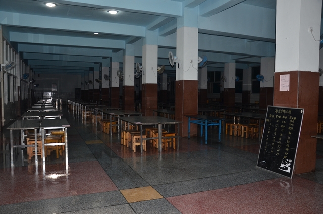 时间已经接近晚九点,在四食堂餐厅里,所有凳子桌子擦得干干净净,码得整整齐齐,餐厅工作人员正在加班冲洗地面……明天,后天,这里将是正源高考生的专用餐厅。