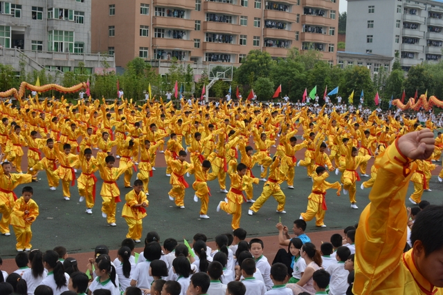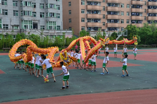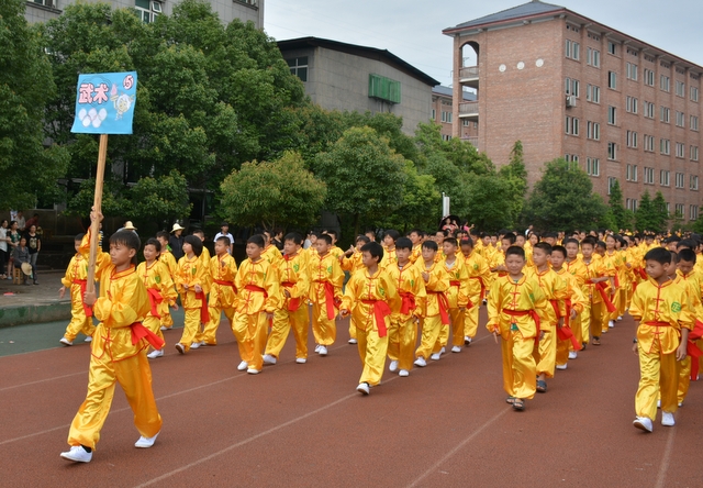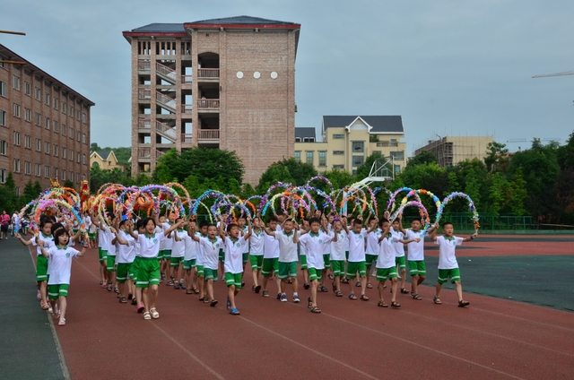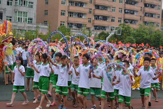 在运动员代表和裁判员代表郑重宣誓后,开幕式进入最后一个环节,节目表演——由一年级表演韵律操、小学龙狮队表演舞龙狮、五年级武术队表演武术操,这三个表演节目博得了大家阵阵喝彩声。