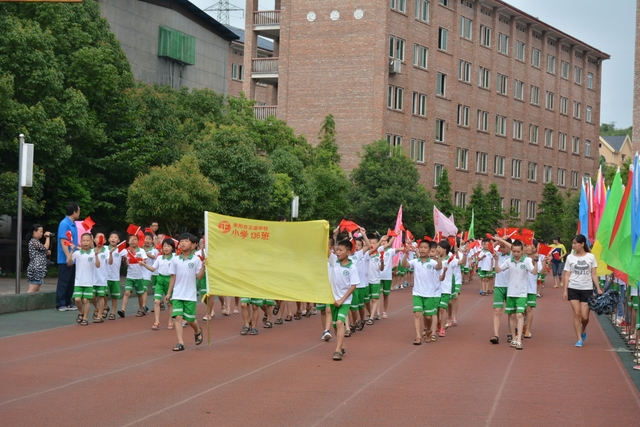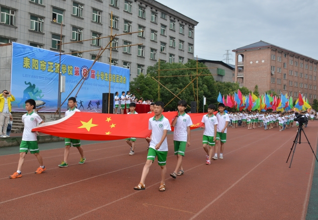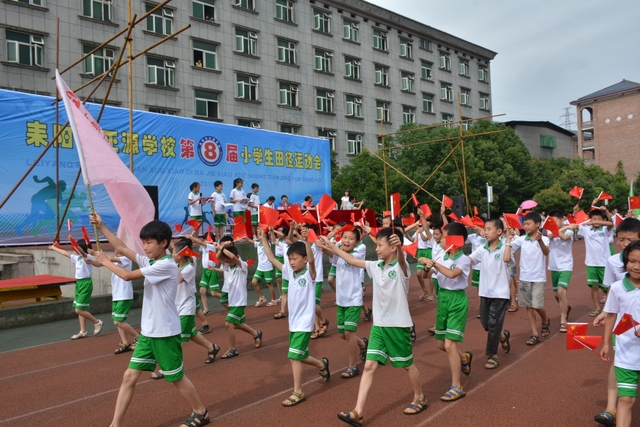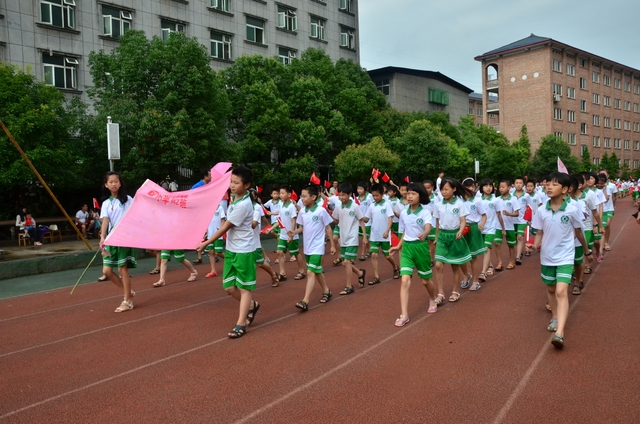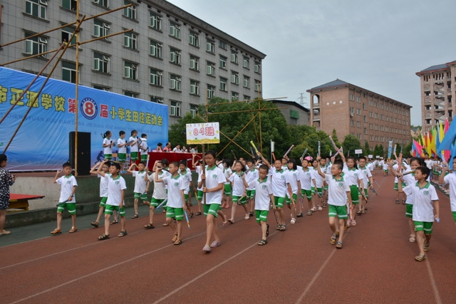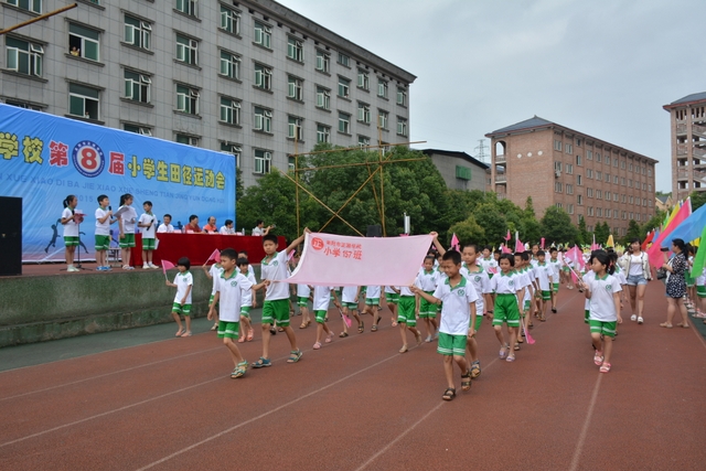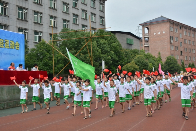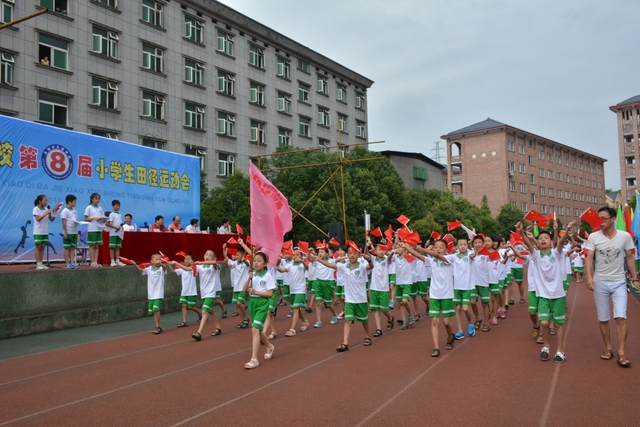 入场式之后是罗校长致开幕词和小学部贺江云主任讲话,他们都认为体育是我校最重要的一项教学工作,每天两千米的跑操、一年一度的远足、每节体育课的操练、篮球队、乒乓球队、武术队等校体育兴趣小组坚持不懈的训练,都锻炼了孩子们的韧性和耐性,使他们不仅仅学到了体育技能,更在体育运动中培养了自己的道德品质和心理素质,让他们学会了合作友爱、自信顽强。