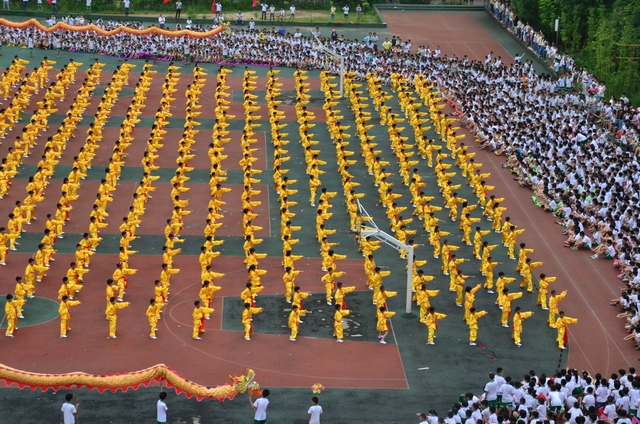 参加本届运动会开幕式人数达到5400多人,班级方阵队合计100个,运动员人数1056人,裁判和领队共计152人。整个开幕式历时整整100分钟。