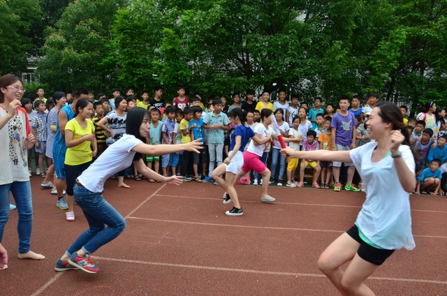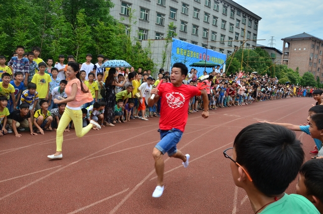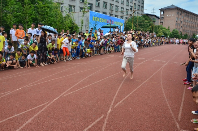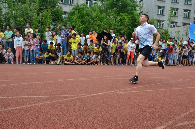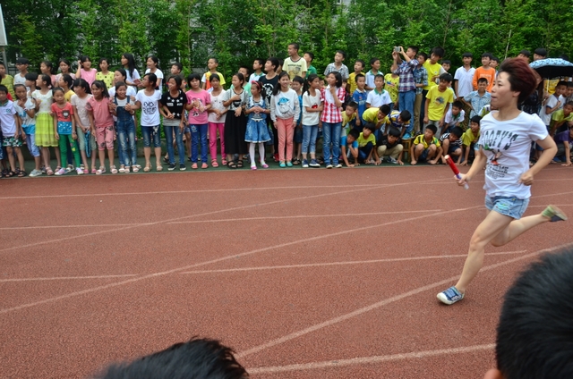 今天运动场上最诱人的就是孩子们的笑脸,他们不论输赢,只要是跑到了终点,就绽放出春花般的笑脸;最震撼人心、将运动会带向高潮的就是老师们的40X50米接力赛。看,老师们如同离弦的箭飞奔而去,短短的50米却如同风驰电掣,大家奋力奔跑,力争第一的神情也感染了在场观看的所有学生,他们纷纷为自己的老师大声呐喊加油,加油声此起彼伏,震天动地,连加油的广播声也被覆盖了!在飞奔的过程中,一位老师不慎摔倒了,但他依旧努力地爬起来,再次努力跑向终点。我想这不仅仅是为年级争取荣誉,更是为人师表最好的诠释吧!让我们向这位老师、这群辛勤工作的老师致敬!道一声:“你们辛苦了!”