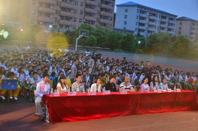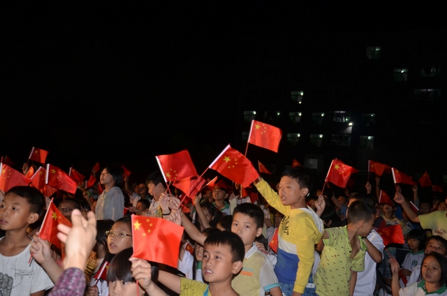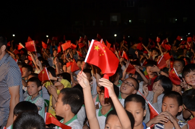 今天是日寇侵华的日子,观众席上到处是五星红旗——“不忘国耻,爱我中华”。