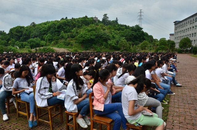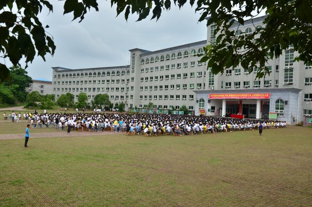 7月7日,初二年级在学校南操场召开升准高一考试动员大会。