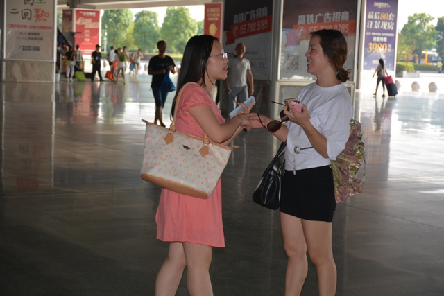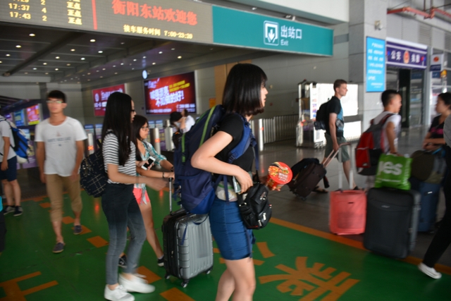 夏令营活动的组织者在衡阳高铁站会面(左为在京大学生徐萍,右为正源学校刘静老师)