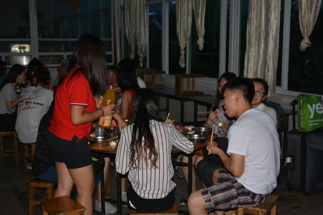 进入食堂,准备吃饭。