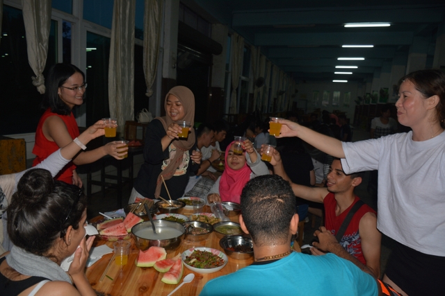 7月13日黄昏,30名不同国籍的大学生志愿者抵达正源学校,受到学校热烈欢迎。
