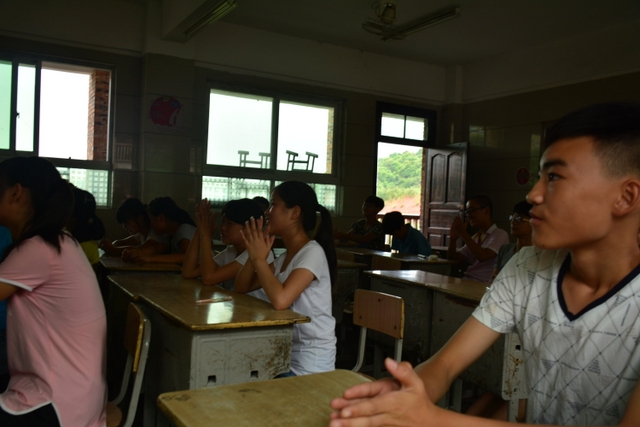 师生初次见面,自我介绍不可避免。笔者到各个班转了一圈,发现志愿者用自己的形式把枯燥的自我介绍变得活泼有趣。