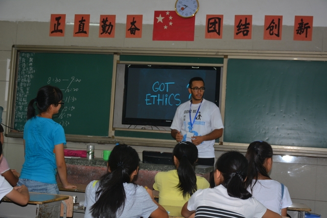 7月16日上午,2015年“幸福微梦想”国际夏令营(以下简称微营)开营第一课。本届夏令营共分13个班,考虑很多国外志愿者中文不是很好,每班上课安排二个志愿者,原则上一个中国大学生和一个外国大学生为一组。