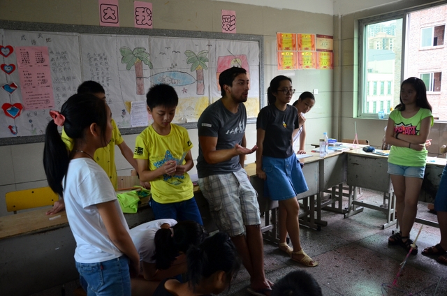 胡易儿老师在课程总结时说,这个游戏的目的主要是拓展大家的创造想象的能力,同时也考验大家团队合作的精神,我们感受颇深。他的外国志愿者搭档Yeal也表示:“在很多地方多做过了这个游戏,有大学生,也有小朋友,每一次做都是不一样的体验和感触。”