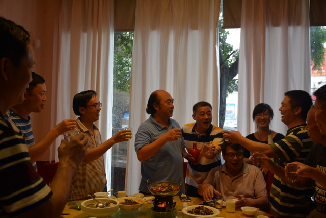 中午12点,罗校长及部分高三老师应邀赴宴,对谢卓及其家人表示了祝贺。谢卓与父母及亲友也纷纷向罗校长和正源学校老师举杯敬酒表达谢意。
