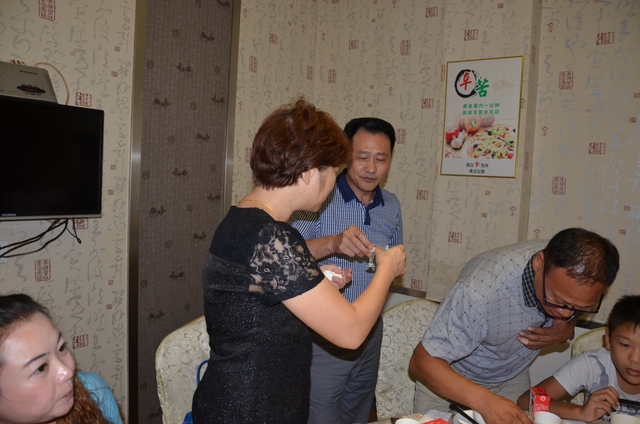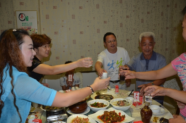 欧阳宁一家向老师敬酒(左一为校长助理廖晴,左二为梁老师、左三为郑老师)
