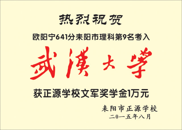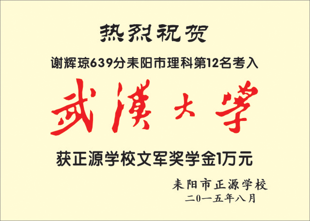 正源学校2015年文军奖学金获奖名单