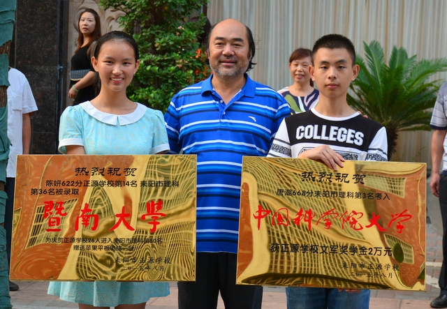 唐潮与表妹陈妍祖籍均系邵阳武冈,七年前两人同时从新生子弟学校进入正源就读小学六年级,三年之后,两人同时升准高一学习,只是唐潮分在清华班,陈妍分在奥赛班,不服输的陈妍进入高一时,硬是以优异的成绩考到了清华班,从此,表亲俩人同在一个清华班——45班学习,期间,他们更加勤奋,互相鼓励,在班上成绩一直靠前。今年高考唐潮668分,陈妍622分,分别被中国科学院大学和暨南大学录取。