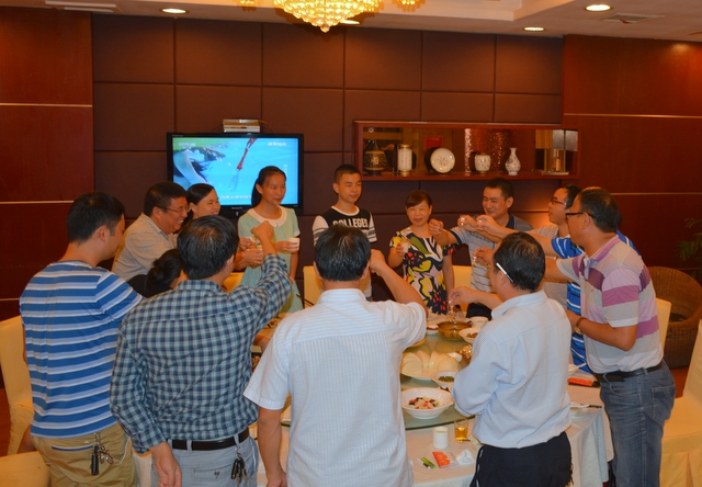 2015年8月30日,唐潮和陈妍两家子邀请罗校长与高三科任老师江宗斌、谭奇凤、郑桂平、陈斌、李康活、刘伟南在天福韵酒店举行谢师宴。感谢学校以及老师的辛勤栽培。