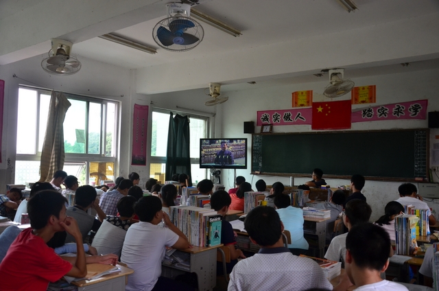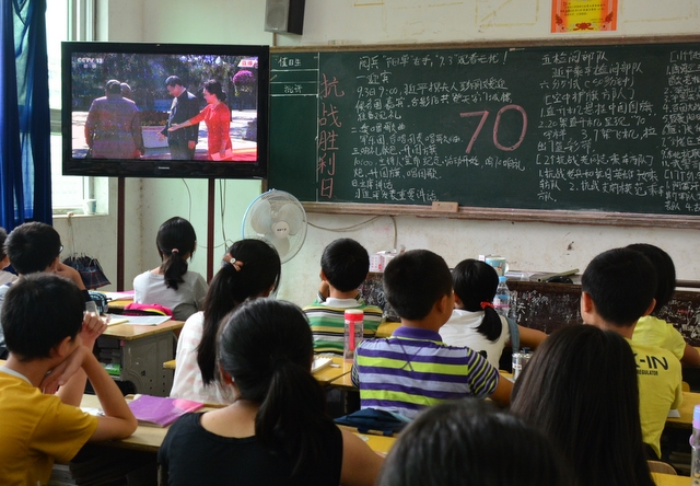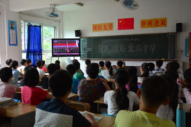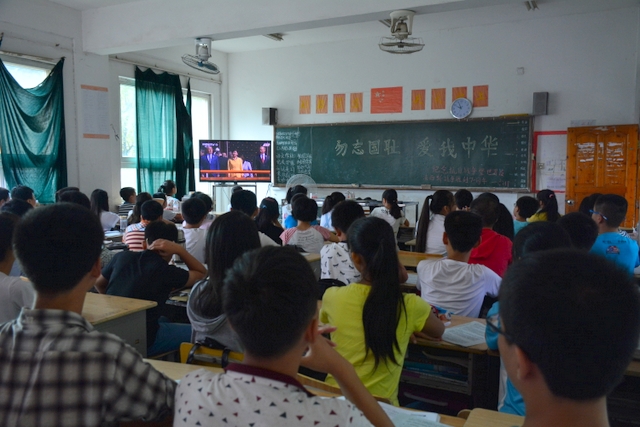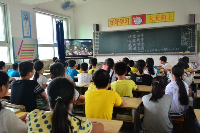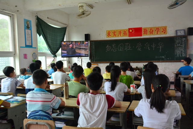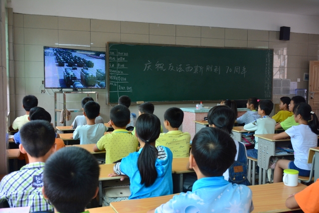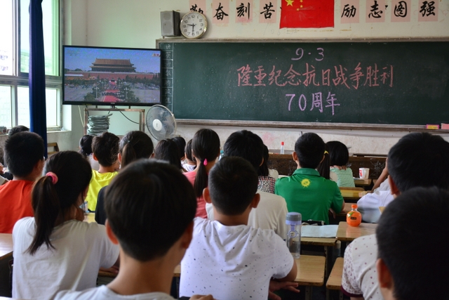 今天,是中国人民抗日战争胜利70周年纪念日。上午,中共中央、中央军委在北京天安门广场举行隆重的纪念大会与阅兵仪式,我校利用学生全部住读的优势,组织全校小学、初中、高中三个学段268个班级15000余名师生认真观看了中央电视台的直播。