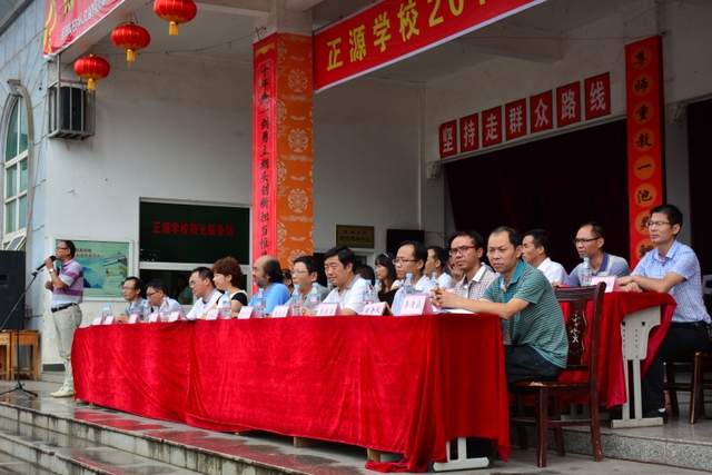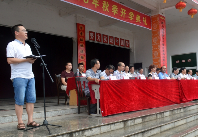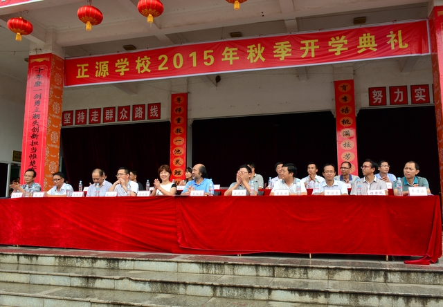 大会主持人、学校办公室主任朱明之宣布:正源学校2015年秋季开学典礼开幕!