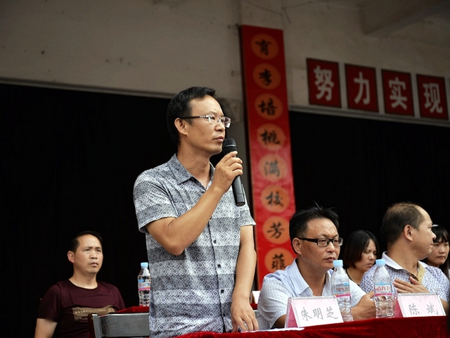 9点20分,校长罗湘云、财务总监梁晓芬、党支部书记毛小波、工会主席陈斌,学部主任黄建新、曾良古、罗俊豪,部门主任朱明之、王伟荣、李清朵、王大昌、谭其凤、周文根、谷荣亮、谭晓云,以及初中部年级主任徐作耘、唐循男、倪南辉、小学部副主任贺江云、周运根、刘溅生、谢红云等在大会主席台落座。