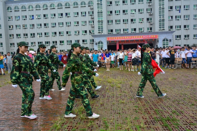 集结刚一完毕,天空渐渐下起雨来。越下越大,有的同学开始动摇起来,但大多数同学兴致不减,毫不动摇。几分钟后,雨停了。不一会,再度下雨,雨势更大,雨时更长,但同学们的坚持再次感动了上帝——十几分钟后,雨停云开。