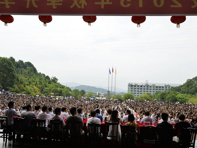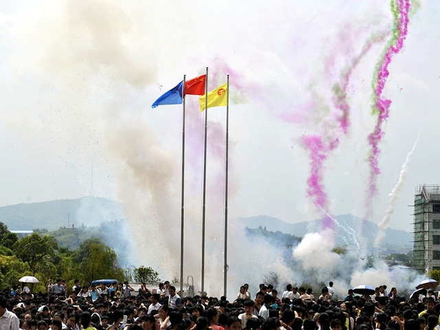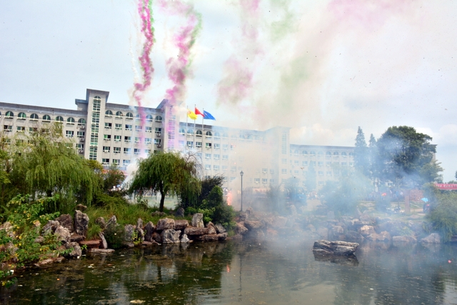 掌声一次又一次地响起,日景烟花再一次升腾,鞭炮声再一次响彻云霄——开学典礼在热烈的气氛中圆满结束。