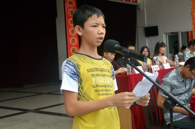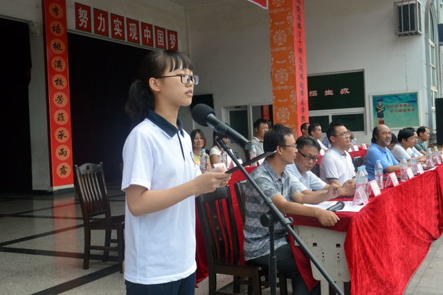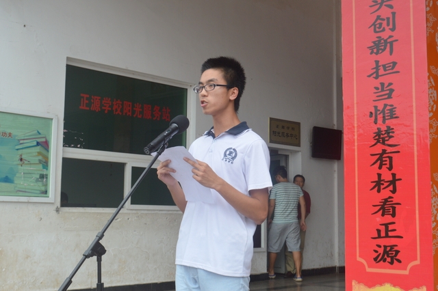 吴月婷、潘洋、伍婉婷、曾琳四位同学分别代表小学部、初一年级新生、高一年级和高三年级学生发言。他们的发言,对即将到来的第31个教师节向老师们表示衷心感谢,纷纷表示,要以全新的风貌投入到新学年的学习中去,做一个有道德的人,一个有理想、有担当的人,一个能吃苦的人。要像刘凡犁、谭智威等学哥学姐那样,勤奋学习,以优异成绩书写人生,回报父母,回报老师,回报母校正源。