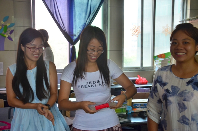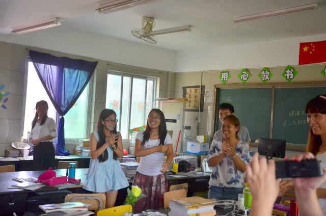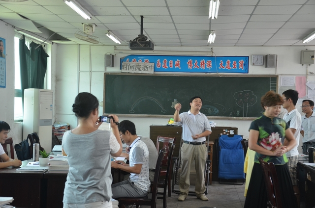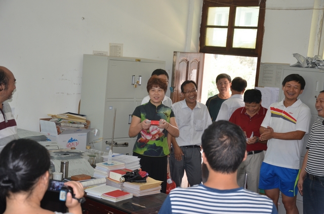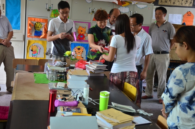 慰问团首先来到小学三年级办公室,老师们笑逐颜开,报以热烈掌声