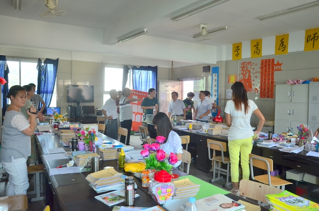 9月10日。上午十一时许,送走了市领导刘市长一行后,罗校长、梁总监便率领学校部分领导慰问团来到各学部各年级办公室,亲切看望教师,并向全体教师发放教师节慰问金。不少办公室的黑板上写出了“热烈庆祝第三十一个教师节”、“祝老师们节日快乐”等标语。罗校长一行所到之处,老师们欢声笑语,对学校领导的到来报以热烈的掌声。初三年级女教师代表给梁总监、罗校长以热情拥抱。罗校长衷心感谢各位老师的辛勤工作,感谢老师们为学校所做出的贡献,希望老师们再接再厉,更上一层楼。梁总监说,这么多年来,我沾老师们的光,吃了不少谢师宴,老师们给我们增足了“面子”,我代表学校给大家一点“里子”。说完,即将用红纸包封的慰问金交由各年级主任代为发放。
