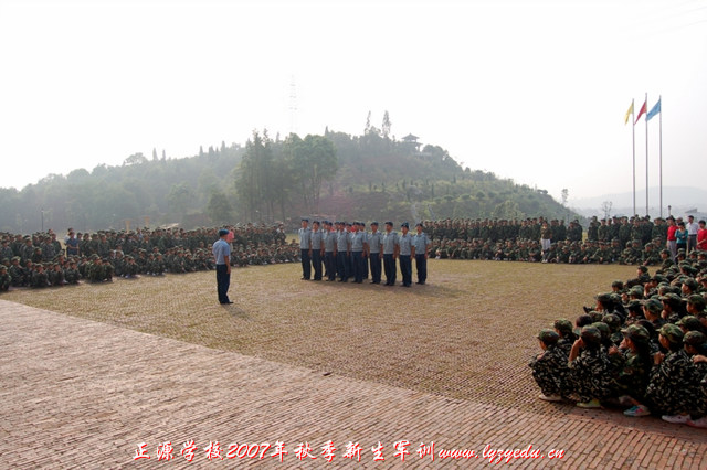 最后,官兵们为师生现场作了队列仪式、军体拳等表演,教官们的精彩表演赢得了同学们的热烈掌声和阵阵喝彩。表演结束后,教官便带领各班到指定场地立即开始训练。至此,我校2007秋季新生军训工作正式开始。